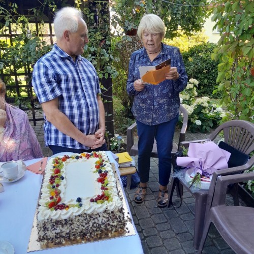 Spotkanie rozpoczęliśmy modlitwą i pieśnią. Był grill, ciasta i urodzinowy tort. Czas na rozmowy i wspomnienia , a także szczególne chwile świętowania – urodzin i jubileuszu