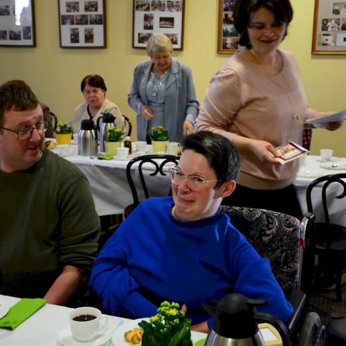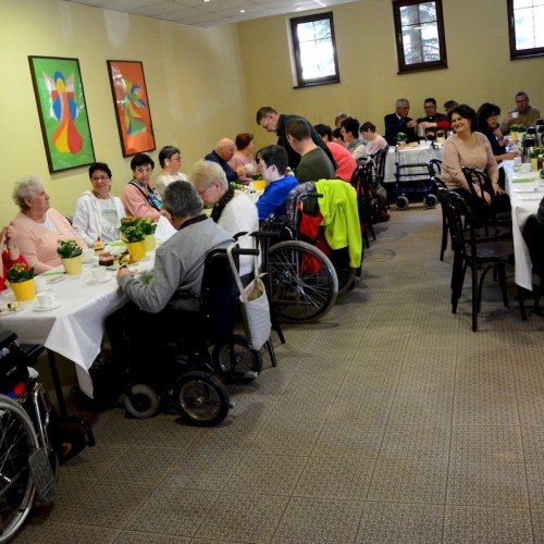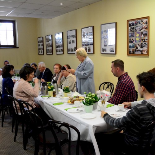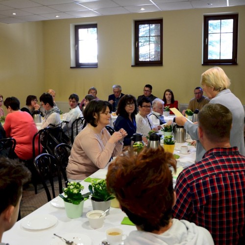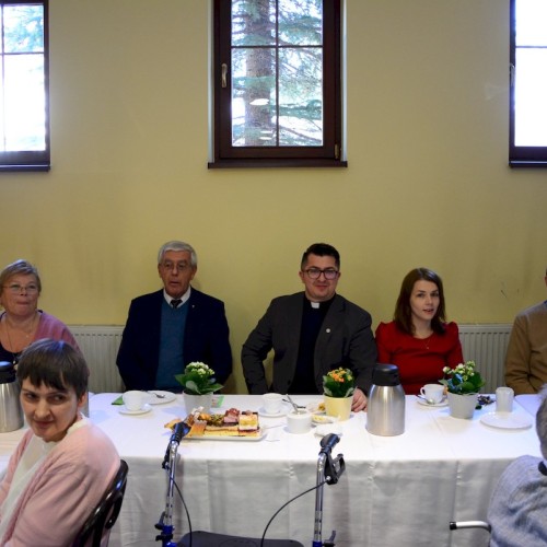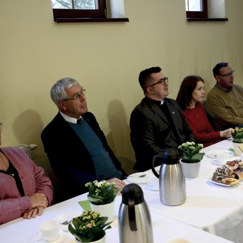 Po nabożeństwie sala wypełniła się po brzegi członkami Stowarzyszenia oraz zaproszonymi gośćmi wśród których byli Ks. Tadeusz Makula z małżonką, proboszcz Parafii W Ustroniu ks. Dariusz Lerch z rodziną, kurator Parafii w Ustroniu Pan Marcin Janik oraz Pan Bronisław Szturc z małżonką. Pysznemu obiadowi towarzyszyły jak zawsze niekończące się rozmowy. W końcu po ponad miesięcznym oczekiwaniu można było wygadać się do woli powymieniać myśli z tymi na których widok czeka się tyle czasu. Niby są telefony ale pobyć z kimś kto jest nam bliski to jednak zawsze o wiele przyjemniej. Na koniec każdy uczestnik spotkania utrzymał piękny prezent. Odrobina nadchodzącej wiosny w doniczce będzie każdemu przypominać w czasie świąt że gdzieś i to wcale niedaleko są Ci dla których jesteśmy zawsze bliscy i pamiętają o nas również w czasie świątecznych chwil.