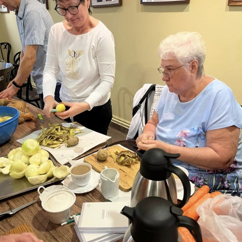 Jesteśmy wdzięczni instruktorom p. Teresie Szcześniewskiej za przypomnienie tradycji heklowań oraz p. Michałowi Bałazemu za odtworzenie kuchni naszych babć. Nie było łatwo, ale dzięki cierpliwości p. Teresy Szcześniewskiej powstało 15 hacek, które zostały przekazane Ustrońskiemu Chórowi Ewangelickiemu podczas nabożeństwa żniwnego. Zaś za sprawą p. Michała Bałazego odtworzone dania naszych babć nie tylko były smaczne, ale także pięknie się prezentowały na naszych stołach.