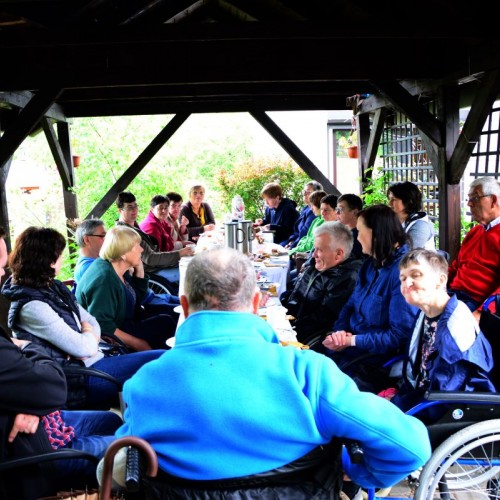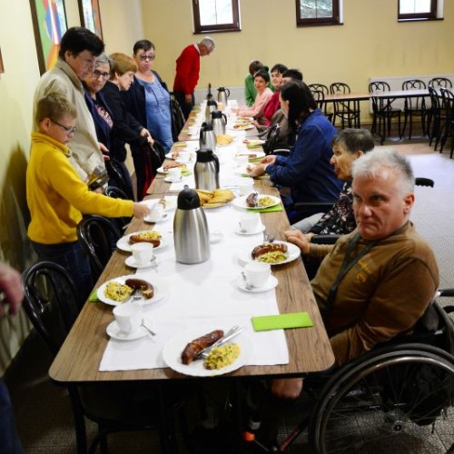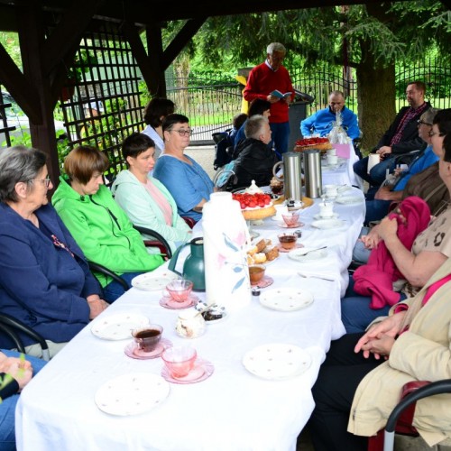 Dziękujemy pastorostwu ks. Tadeuszowi i Halinie Makula za zaproszenie. Zostaliśmy bardzo serdecznie przyjęci. Spotkanie rozpoczął ksiądz Tadeusz krótkim rozważaniem, zaś pani pastorowa przygotowała dla nas pyszne wypieki. Wspominaliśmy wspólne pobyty w Żorach i snuliśmy plany na przyszłość. Na obiad wróciliśmy do Parafii na Zielono-Świątkową jajecznicę.