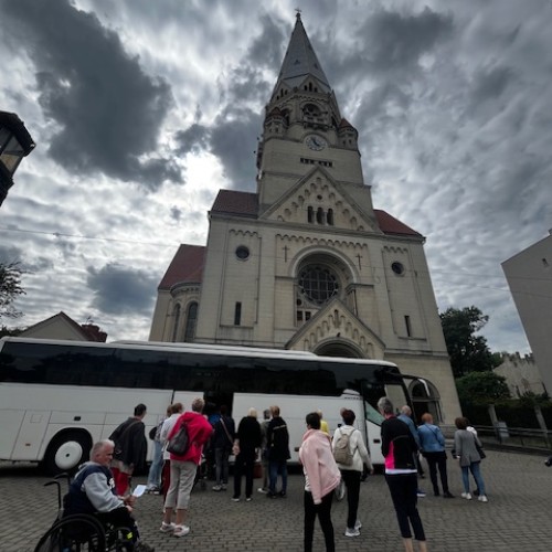 Kolejny etap to zwiedzanie z przewodnikiem p. Mateuszem. Spacer po Piotrkowskiej zakończyliśmy na Parafii Ewangelickiej, gdzie zostaliśmy poczęstowani obiadem i torcikiem na koniec zwiedzanie kościoła ap. Mateusza, Muzeum Włókiennictwa, objazd z przewodnikiem po Łodzi i powrót do domu. Nie obyło się bez przygód.
